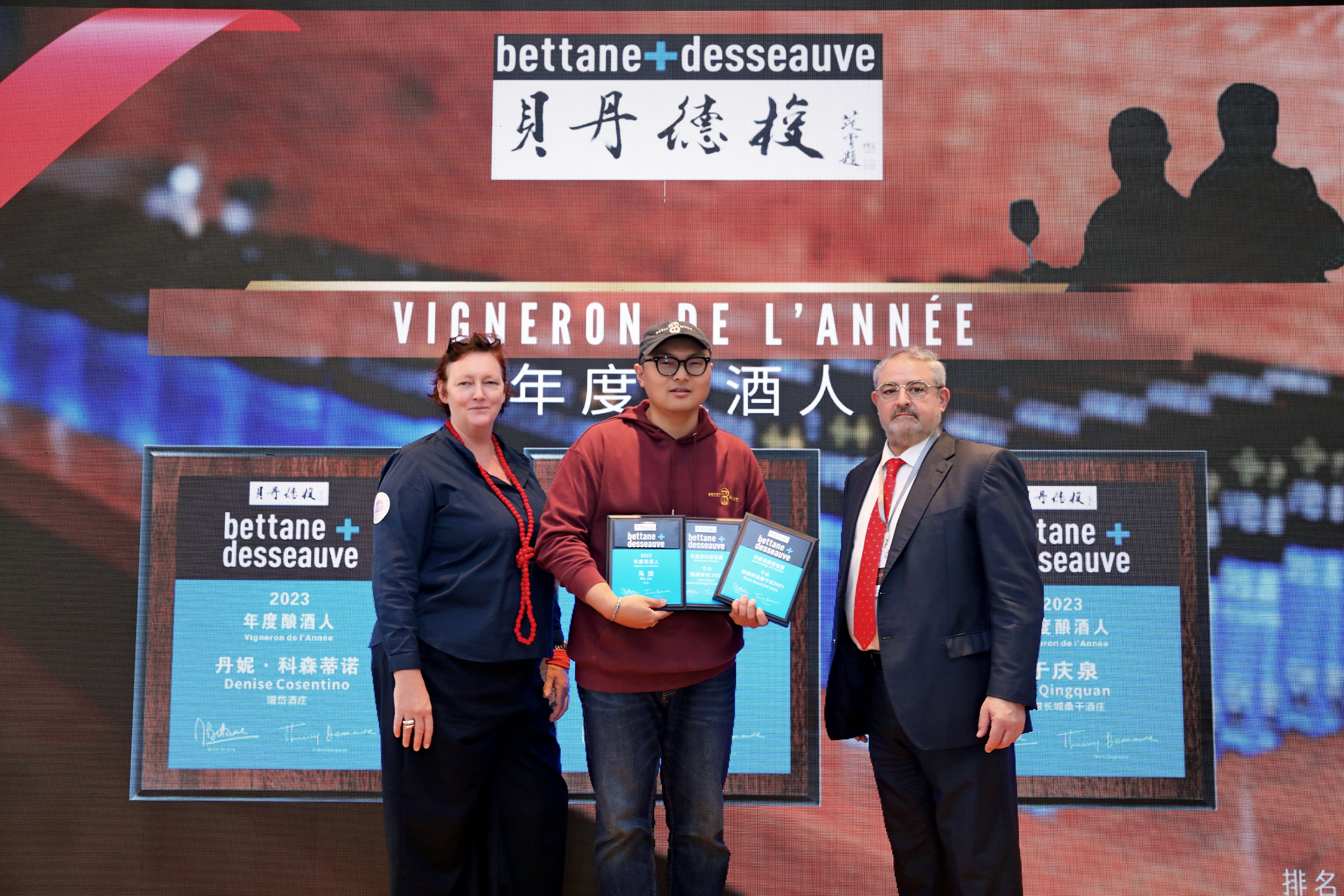 On 19 March 2024, Ma Jie (center) attended the 4th Bettane Desseauve China Wine Awards Ceremony in Chengdu and received the certificate of “Vigneron de l'Année”.